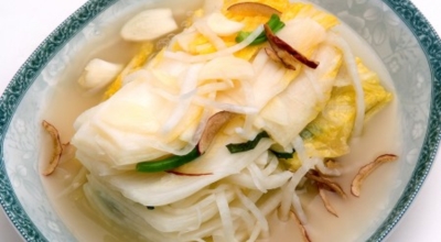대추채나 석이버섯, 밤 등과 같은 고명 때문에 통 배추김치보다 훨씬 담그기가 쉬우면서도 고급스럽고 귀하게 여겨지는 김치가 바로 백김치입니다. 새우젓과 소금만으로 간을 하여 국물색이 깨끗하며 젓갈냄새가 많이 나지 않아 국물 맛이 깔끔하고 시원하답니다.